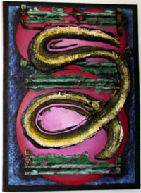 As a teacher and an artist, her inspiration has been largely through the works and writings of Wassily Kandinsky. Kandinsky searches, as does Zehring, for individual meaning through art making. He relied on his unconscious reflections of visual memory. Kandinsky and Franz Marc created a group called the “Blaue Reiter,” named after a painting by Kandinsky, which demonstrated his search for a spiritual reality in art. “The Blaue Reiter Almanac,” published in 1912, emphasized the idea of multi-faceted art styles, folk and primitive art, children’s sketches, Asiatic, African, Medieval Woodcuts and sculpture. Although there is no evidence that Kandinsky was directly influenced by primitive art, it was in the ideas of ritual and the spiritual as related to the primitive experience that may help in understanding the connection between his and Zehring’s philosophy.