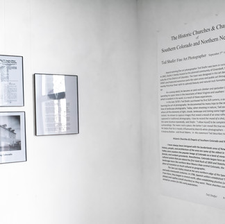 In an adjacent gallery accessible via elevator are the quiet photographs of Ted Shaffer The Historic Churches & Chapels of Southern Colorado and Northern New Mexico. Each replete with time, place and purpose to tell the story of those who settled in our area without the pleasure of knowing them. Within the gallery is the inaugural exhibit of the Early Hispano Families of Huerfano County – the works of Sylvia Lucero Brandle.